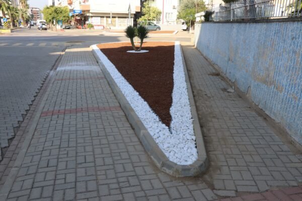 Yol boyunca uzanan orta refüjlerde yapılan kapsamlı temizlik sonrası kuru peyzaj uygulaması hayata geçirildi. Bu çalışma sayesinde hem bölgeye modern ve estetik bir görünüm kazandırıldı hem de su tasarrufu sağlayan sürdürülebilir bir çevre düzenlemesi gerçekleştirildi.